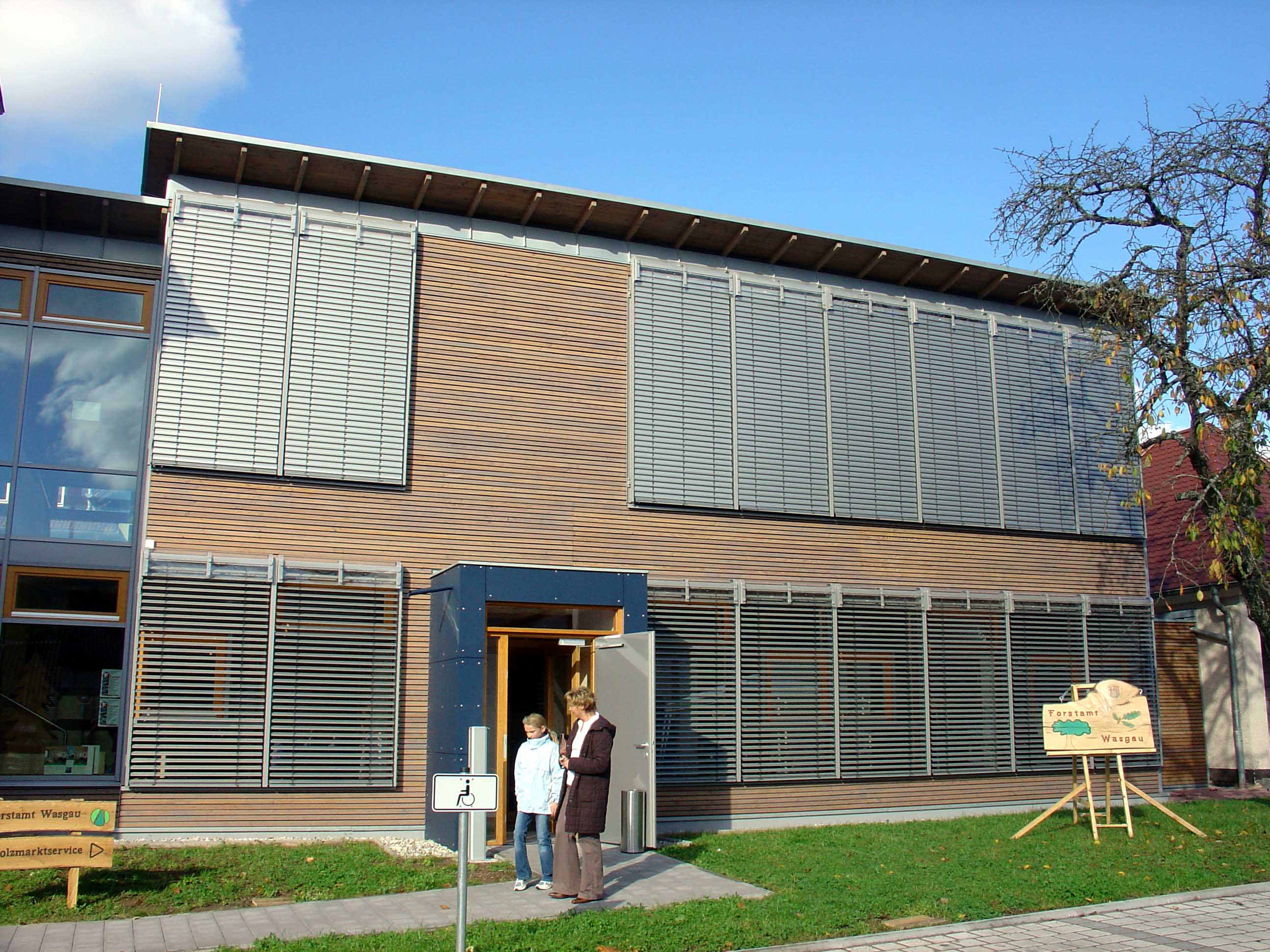 Das Forstamt Wasgau sollte um Büros für den Holzmarktservice ergänzt werden, der schwerpunktmäßig die Aufgabe der Vermarktung der wertvollen Pffälzerwald-Eiche organisiert. Unter Rücksichtnahme auf das vorhandene historische Forstamtsgebäude entstand ein sympatischer Bau, der Offenheit und Transparenz ausstrahlt und im Wortsinne einladend für Kunden und Mitarbeiter wirkt.