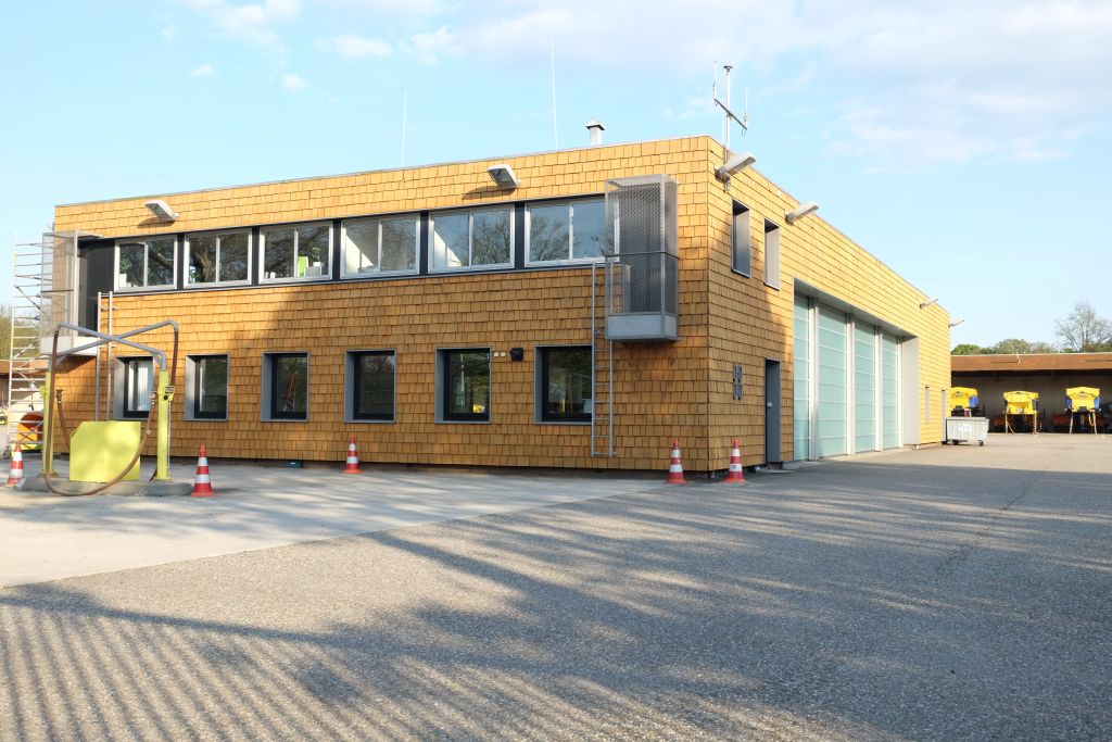 Der Gebäudekomplex wurde weitgehend mit inländischen FSC-Holz ausgeführt - mit Ausnahme der Schindelfassade, die aus western red cedar besteht.