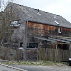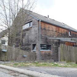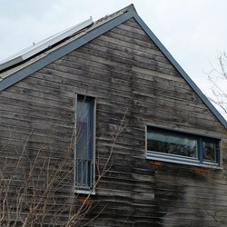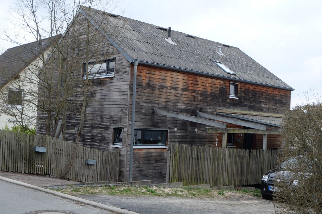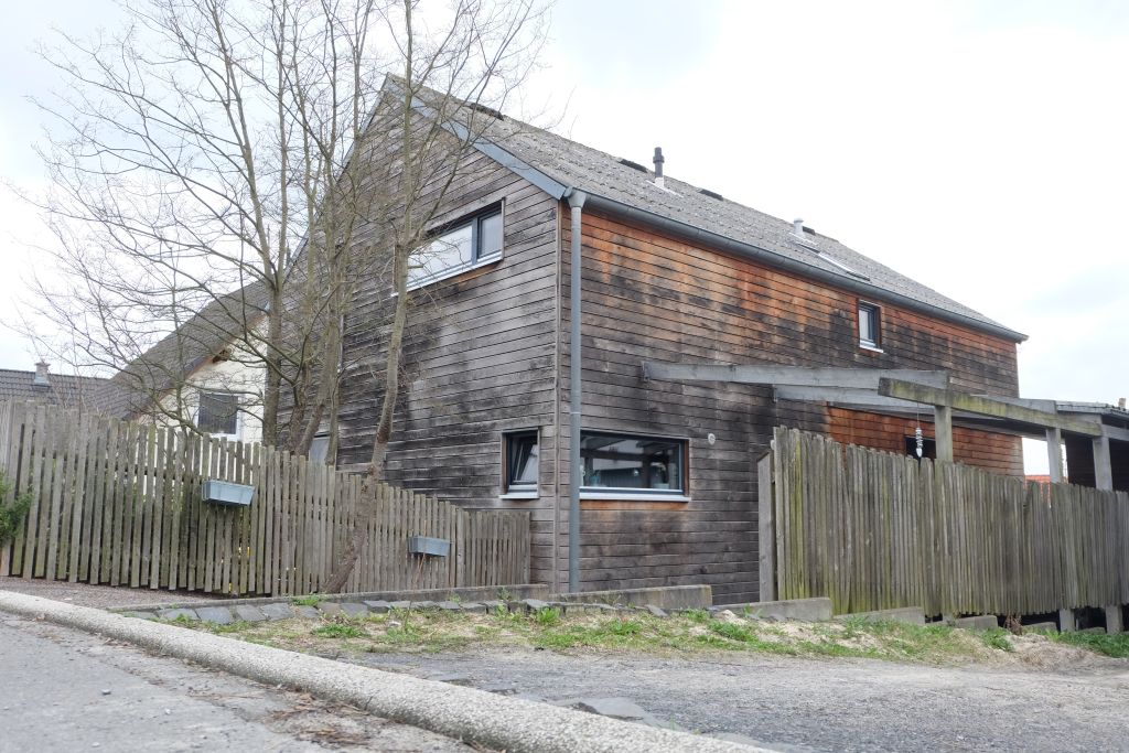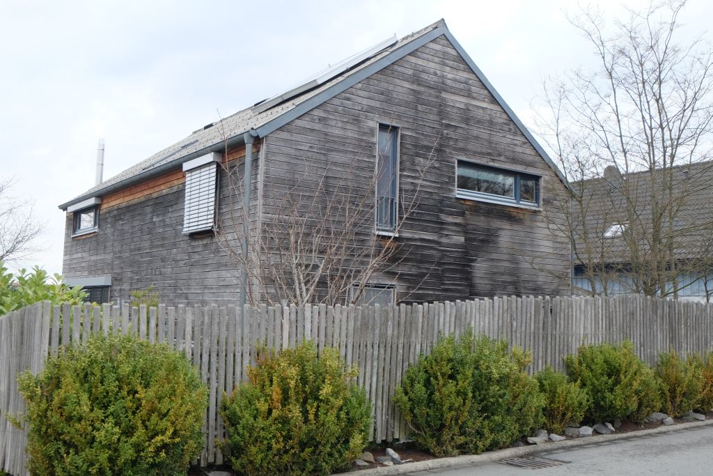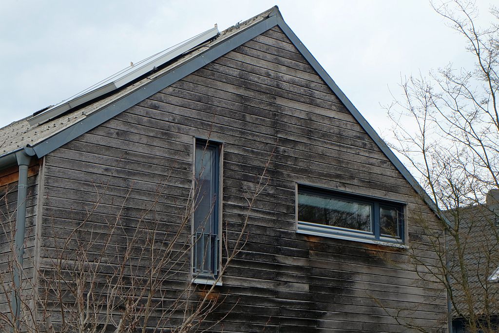 Holzrahmenbau (Niedrigenergiehaus) mit Eichenholz-Aussenschalung.