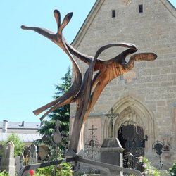 Skulptur "Spannung" von Ferdinand Lackner auf dem Friedhof St. Peter
