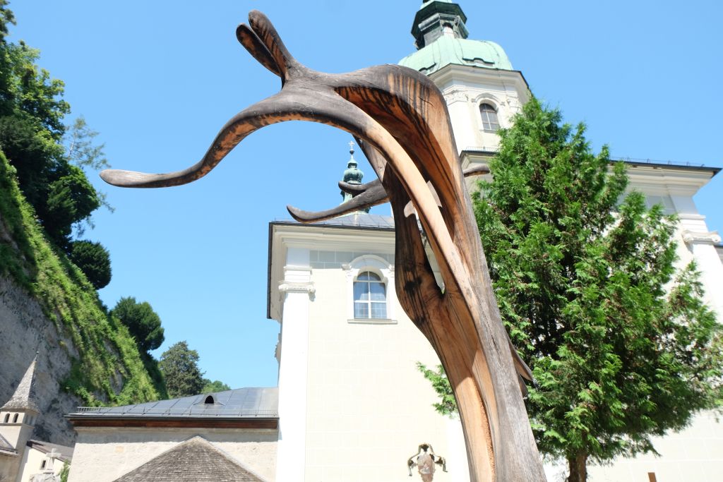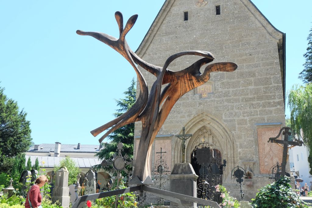 Salzburg, Skulptur "Spannung" auf dem Friedhof St. Peter
