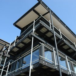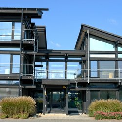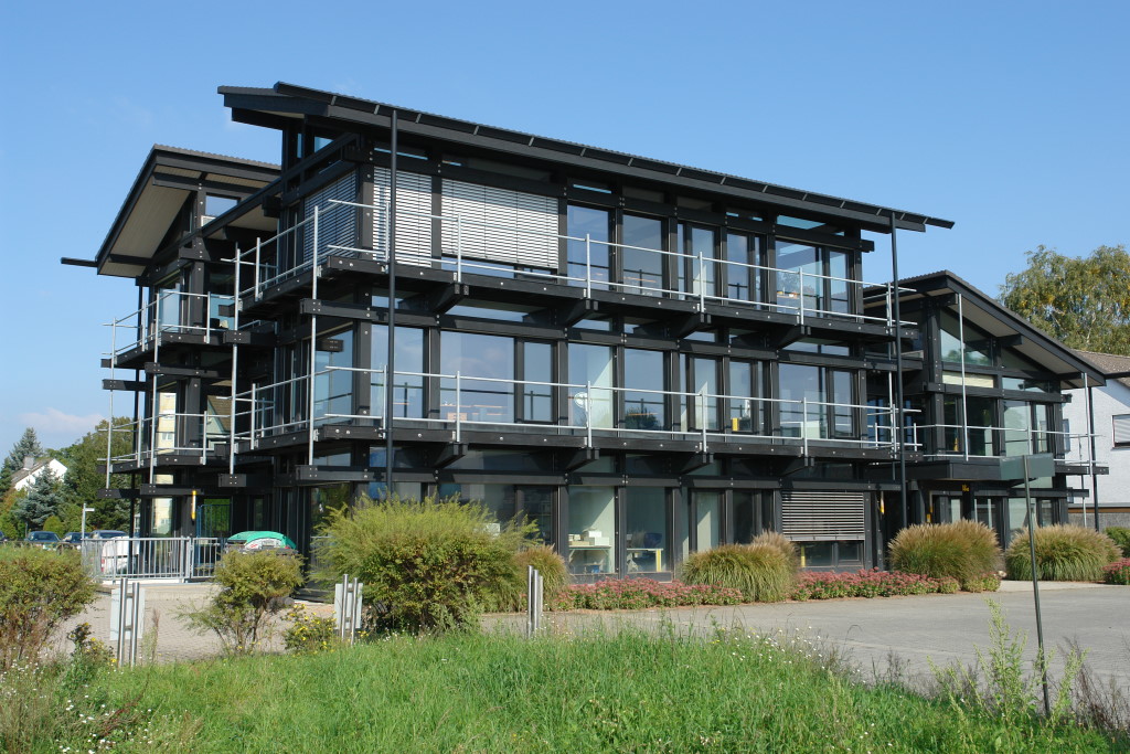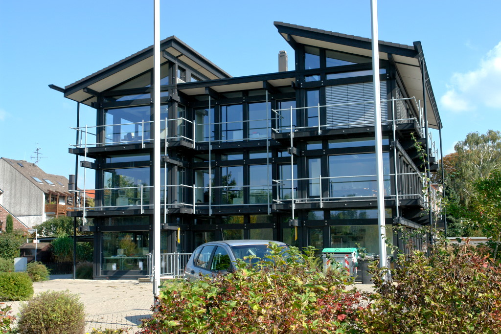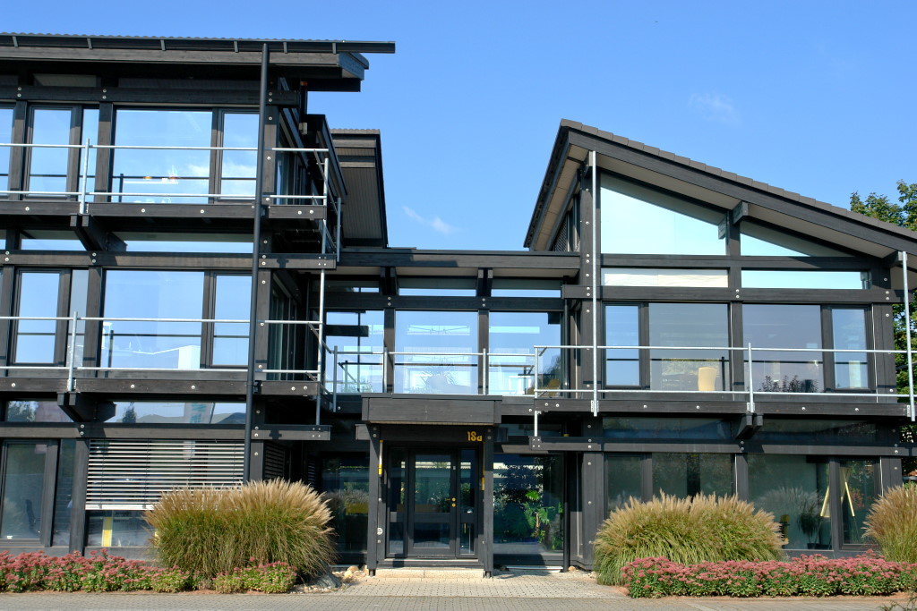 Das Bürogebäude der Software-Firma Intakt ist ein Holz-Skelettbau des bekannten Herstellers HUF-Haus.