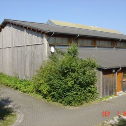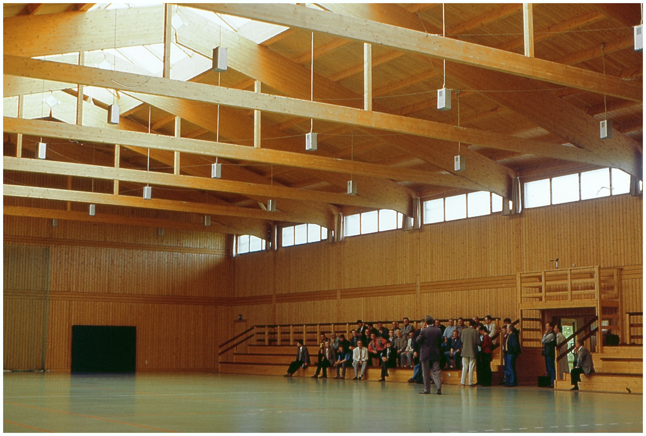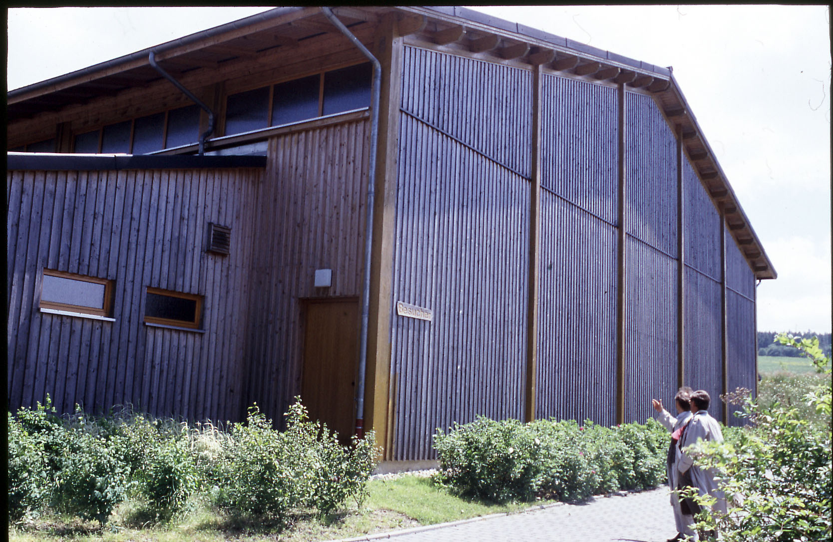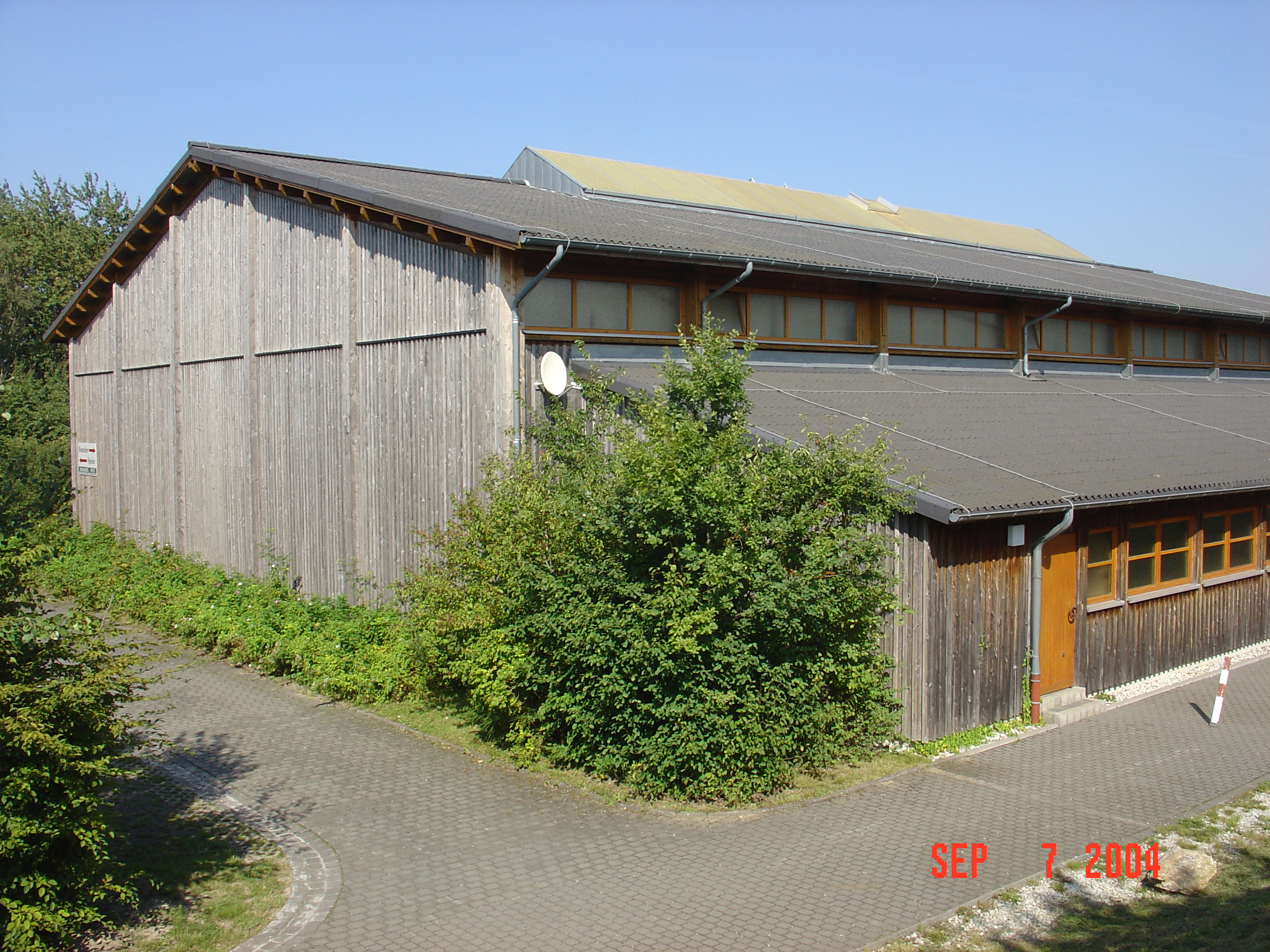 Für eine kleine Gemeinde ist ein solches Projekt ein finanzieller Kraftakt. Das Projekt wurde nur möglich, weil Holz aus dem eigenen Gemeindewald eingebracht wurde und die Sportvereine Eigenleistungen von 100.000 Euro einbringen konnten. Letztere wurden durch die Holzkonstruktion erst möglich. Die gesamte Außenverkleidung besteht aus einheimischem Douglasienholz, das in Zusammenarbeit mit der rheinland-pfälzischen Forstverwaltung erstmals in dieser Größenordnung zum Einsatz gebracht wurde. Mit einer Breite von 25m und einer Länge von 45m ereicht die Halle beeindruckende Dimensionen, noch ergänzt um die Nebengebäude. Mit Gesamtbaukosten von etwa 1,2 Millionen Euro (reine Baukosten 0,9 Mio Euro) war das Projekt außerordentlich günstig.