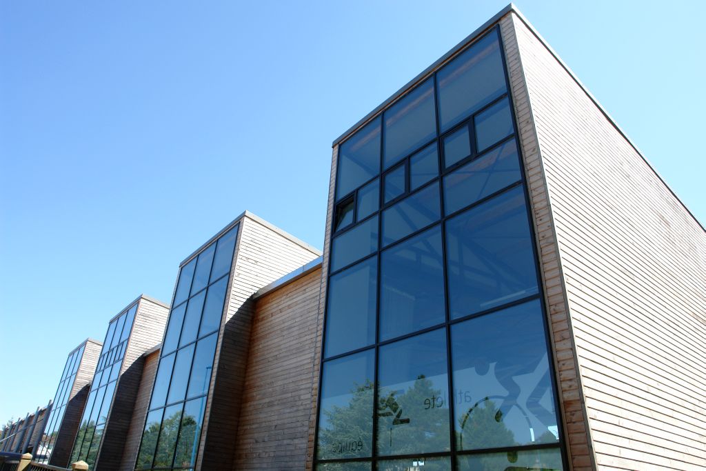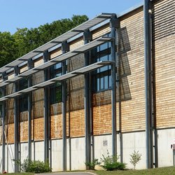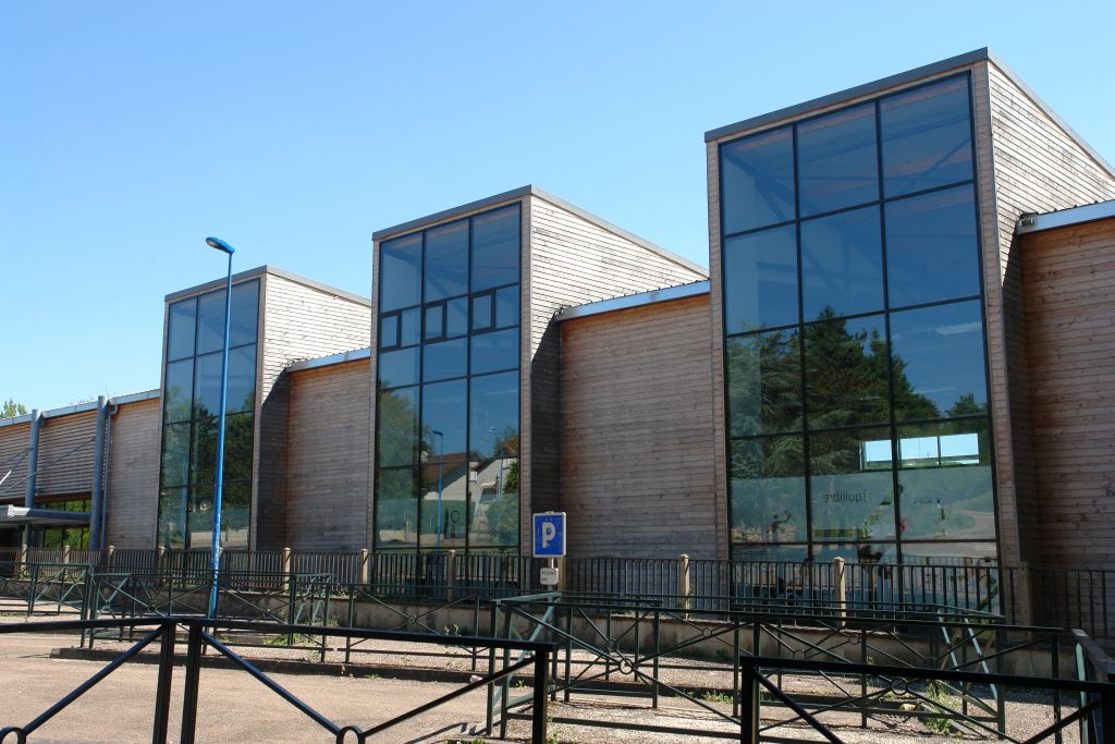 Sporthalle des Collège Giroud de Villette am Ortseingang von Clamecy. Auch städtebaulich wichtiges Projekt in einer bautechnisch schwierigen Hangsituation.