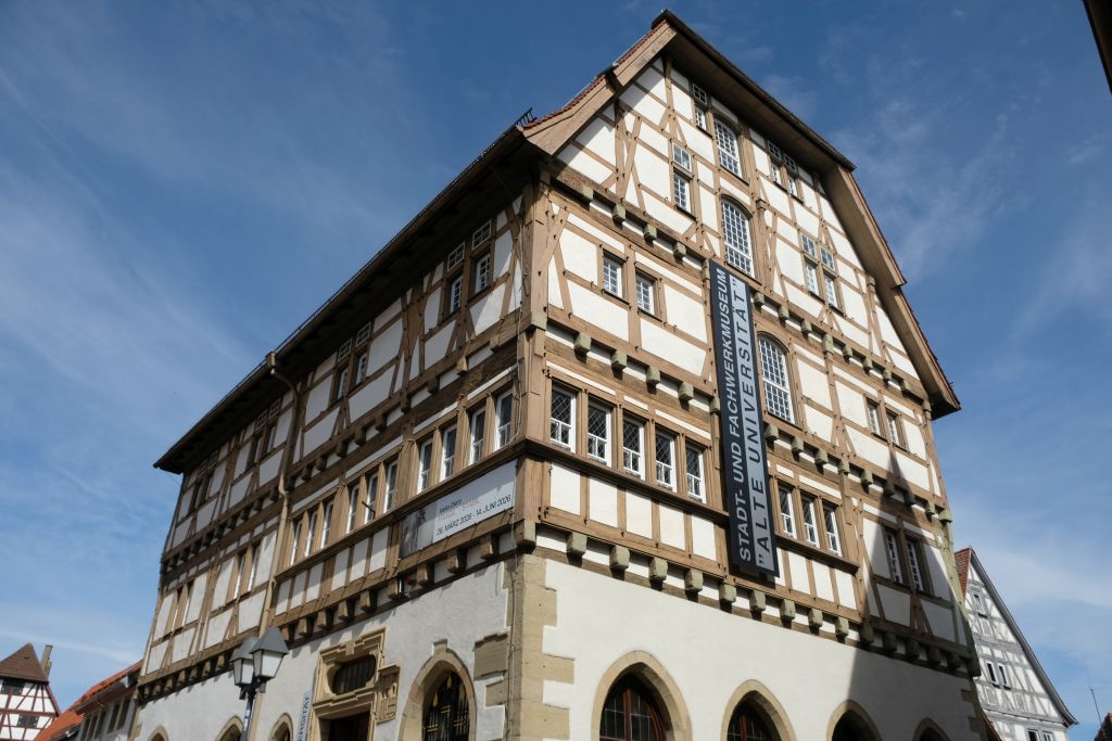 Das Stadt- und Fachwerkmuseum ist selbst in einem stattlichen alemannischen Fachwerkbau untergebracht, der als "alte Universität" (die Heidelberger Universität kam dort im Pestjahr 1564/65 unter) 1495 erbaut wurde.