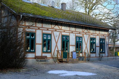 Die ehemalige Lesehalle ist heute Verlagshaus, Buchhandlung und Kunstgalerie. Entsprechend dem speziellen Sortiment - Asiatica - wurde auch das Gelände umgestaltet und bildet eine harmonische Einheit. Erstaunlich, wie gut Fachwerk und asiatische Kulturgüter zueinander passen.