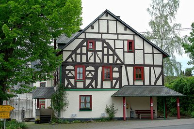 Das Fachwerkhaus aus dem Jahre 1738 wurde bei der Ahrflut 2021 beschädigt, danach vorbildlich wieder aufgebaut (Raulf Architekten, Aachen)