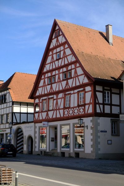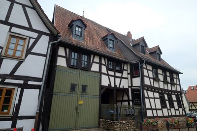 Uner den zahlreichen Fachwerkbauten im Stadtgebiet ragt das Ensemble des Marktplatzes mit Bauten der Jahre 1583-1606 besonders hervor. In einer direkt abzweigenden Seitengasse (Karlstraße 13) steht das "Spitzhäuschen", das 1416 entstanden ist.