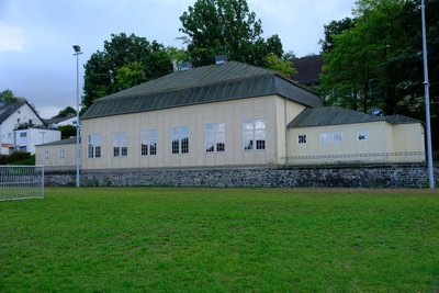 Standard-Turnhalle nach dem System "Döcker", die 1911 auf der ersten internationalen Hygiene-Ausstellung gezeigt wurde. Sie wurde nach dieser Messe von der Gemeinde Langerfeld gekauft und auf einem gestifteten Grundstück erneut aufgebaut. 2006-2008 wurde diese historisch interessante Halle umfassend saniert. (Projektierung: Wissmann Architekten, Wuppertal; Ausführung Holzbau: Schmees & Lühn,…
