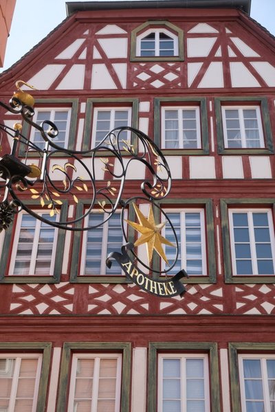 Die Schmid'sche Apotheke stammt aus dem 16. Jahrhundert und war Geschäfts- und Handelshaus. 1863 wurde in dem Fachwerkgebäude eine Apotheke eingerichtet und das Anwesen 1906 im Jugendstil überformt