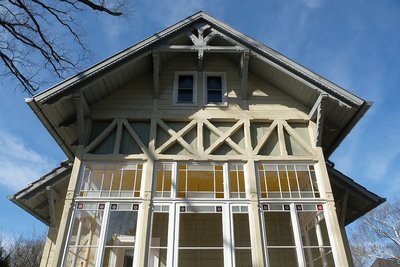 Denkmalgeschützte Villa aus dem Jahre 1897 mit Fachwerkgiebel mit Ziergespärre (Architekt: H.Apitz).