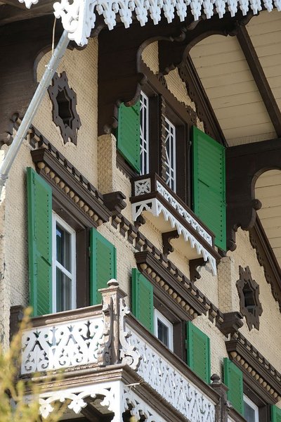Aussen verschindeltes und verziertes Holzhaus aus dem Jahre 1877 (Holzfertigbau der Chalet- und Parketteriefabrik Interlaken)