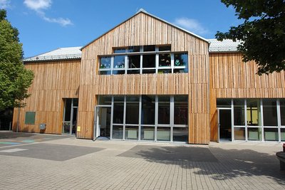 Die Hauptschule wurde saniert und einen einen großzügigen Eingangsbereich /Foyer in Holzbauweise erweitert