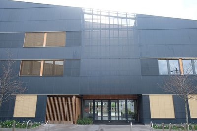 Zweigeschossiger Brettsperrholzbau mit Decken aus Brettstapelelementen. Beim Bau kam Holz aus dem eigenen Stadtwald zum Einsatz