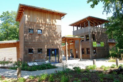 Das Haus der Naturpädagogik, entstanden im Eingangsbereich des Wildparkes Rheingönheim, ist zentraler Kristallisationspunkt für die Umwelterziehung im Stadtgebiet von Ludwigshafen. Auch das Gebäude drückt den Nachhaltigkeitsgedanken aus. Es ist ein Holzskelettbau, unterteilt in zwei Baukörper mit zusammen 330m² Grundfläche, die mit einem Steg verbunden sind.
