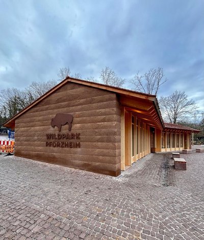 Für das nachhaltige Gebäude wurde Holz aus dem Schwarzwald (Konstruktion, Holzfaserdämmung), Stampfbeton und wiederverwendete Dachziegel eingesetzt.