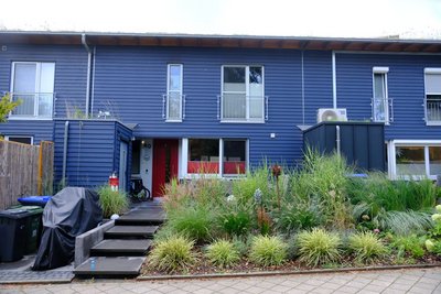 Acht Doppelhäuser in Holzbauweise, entstanden durch eine Bauherrengruppe (Niedrigenergiebauweise).