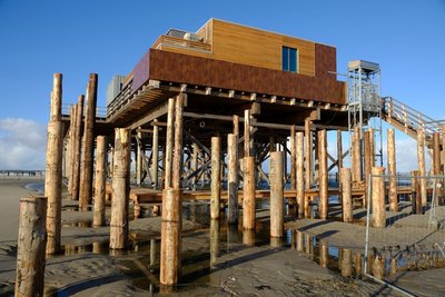 Verwaltungsgebäude der Wasserwirtschaftsverwaltung. Reines Betongebäude mit einer hoch wärmededämmten Fassade aus Holz.