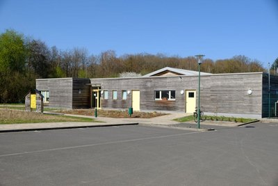 Mischkonstruktion, tragende Wände und Stützen aus Stahlbeton, nichttragende aus Holz. In ähnlichem Stil und von der gleichen Architektin war bereits in 2000 eine Erweiterung gebaut worden.
